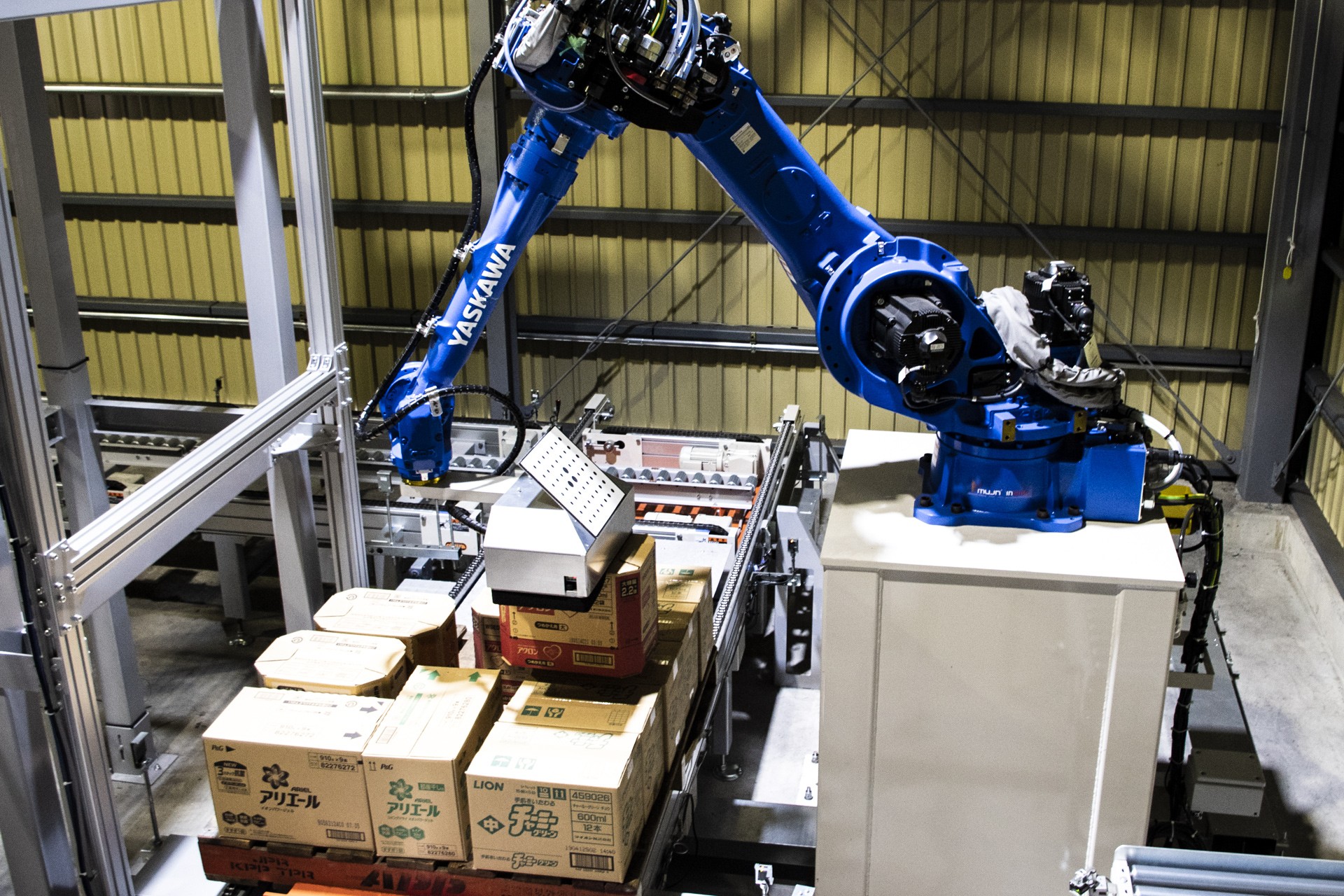 MujinOS brings intelligence and adaptability to high-volume consumer goods operations, uniting packaging, palletizing, and logistics workflows under one control platform