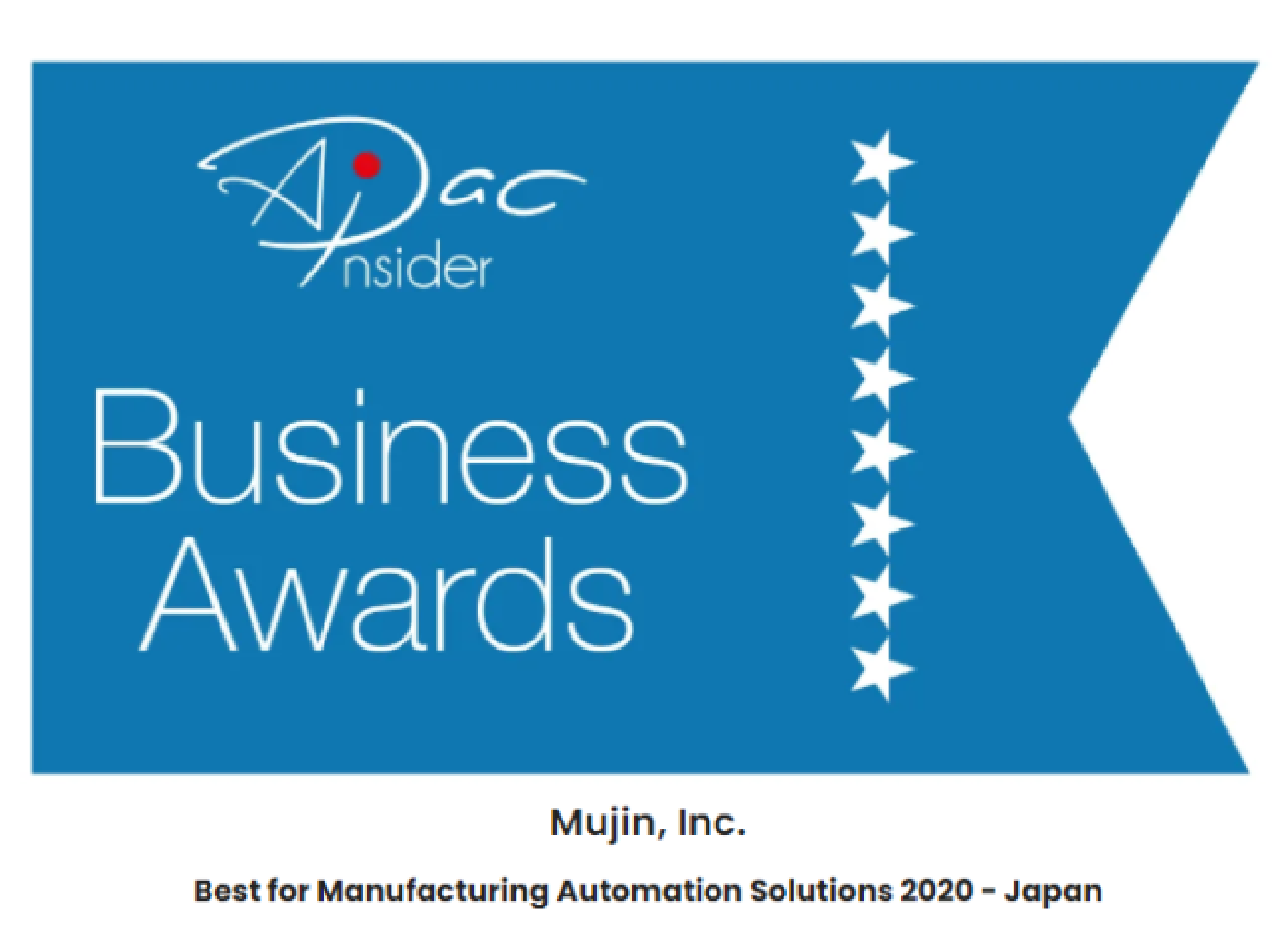 Tokyo, Japan (January 20, 2021) — Mujin won “Best for Manufacturing Automation Solutions 2020” of APAC Business Awards 2020 organized by APAC Insider, which is web media focusing on business in APAC.